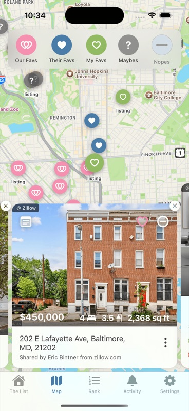 Each person marks listings as Fav, Maybe, or Nope. No pressure, just honest reactions.